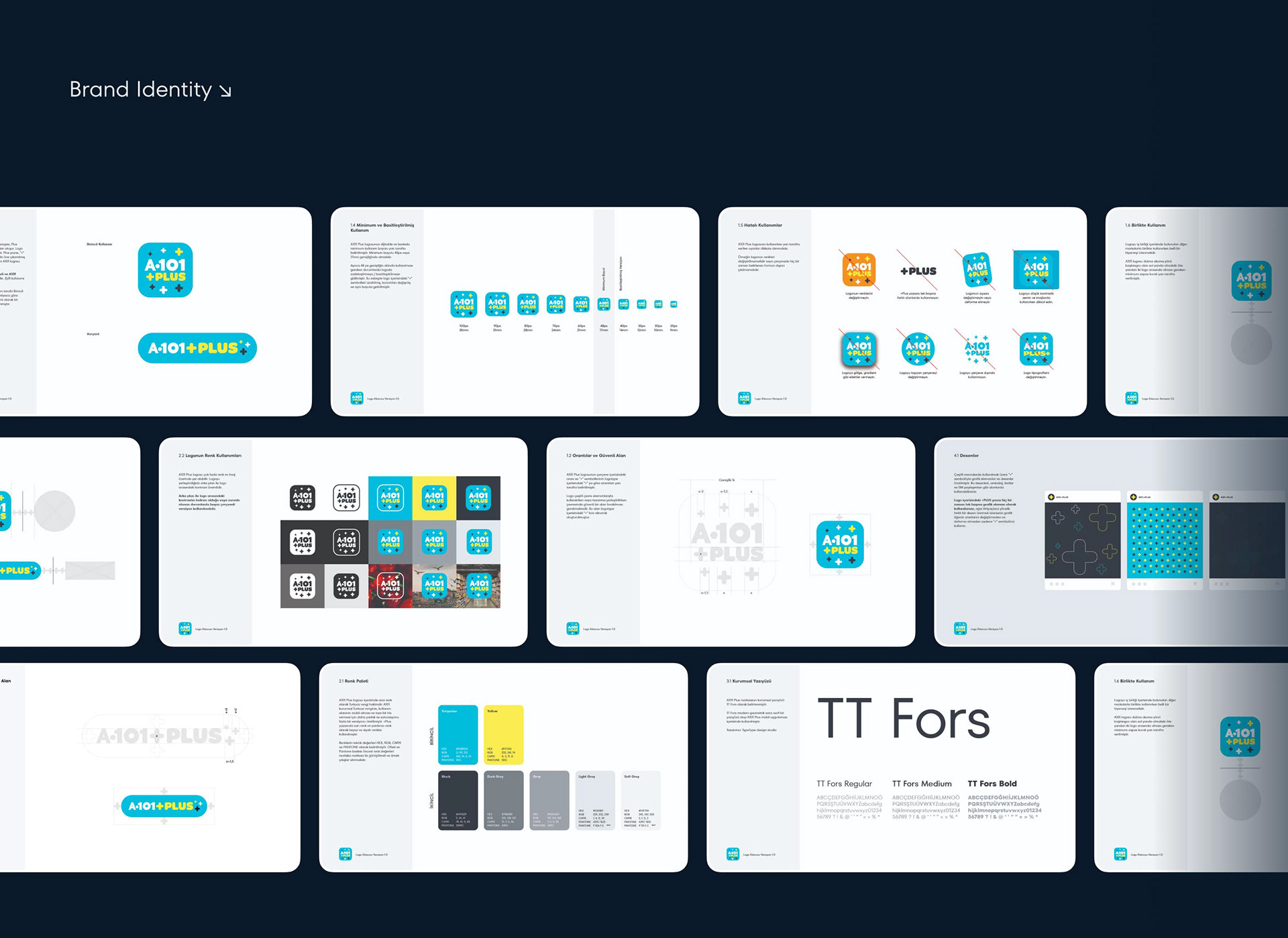 Our design team designed the logo of A101 Plus to appropriate the current A101 branding, and reflect the advantage of the app and its pros. The frame of the logo of A101 Plus was designed like a continuity shape among the brand, the chose of bold and soft typeface is for a more sincere communication. + PLUS was placed under A101 logotype while shape of pluses reinforce the benefits of app.