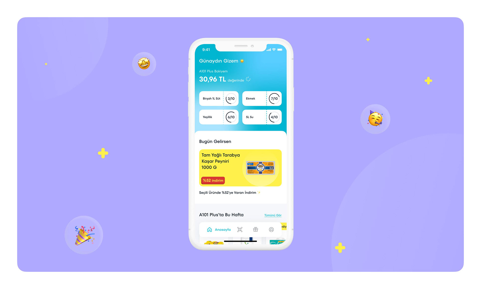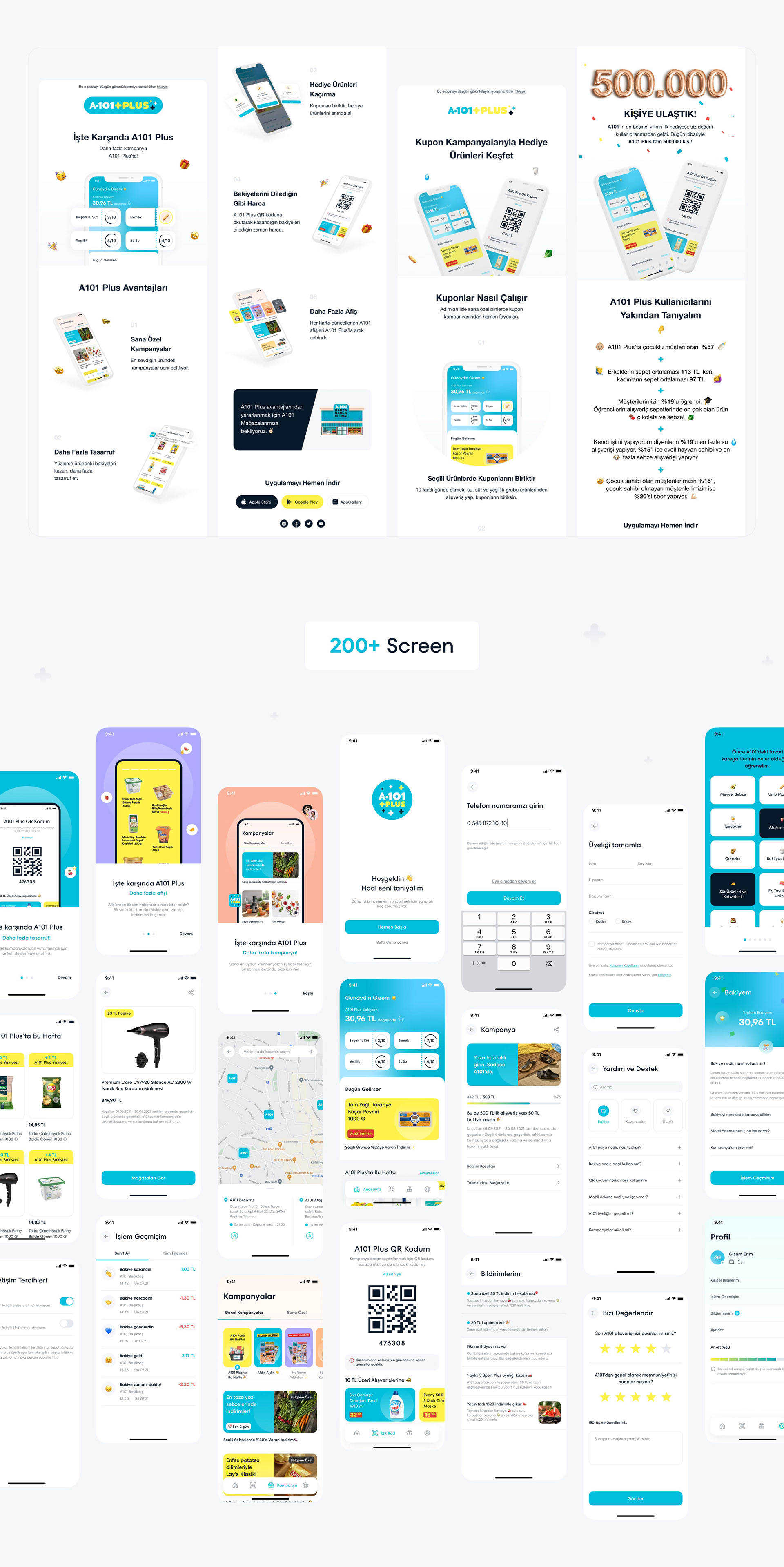 A101 Plus, one of the biggest shopping markets in Turkey, develops a new generation online shopping app that recognizes users' needs, campaigns and discounts on users' favoured products. Users earn lots of balance while offering a brand new experience. The app was downloaded by 500.000 users in a short amount of time in 2 months, and Currently, the app is among the most popular apps on the App Store and Google Play.