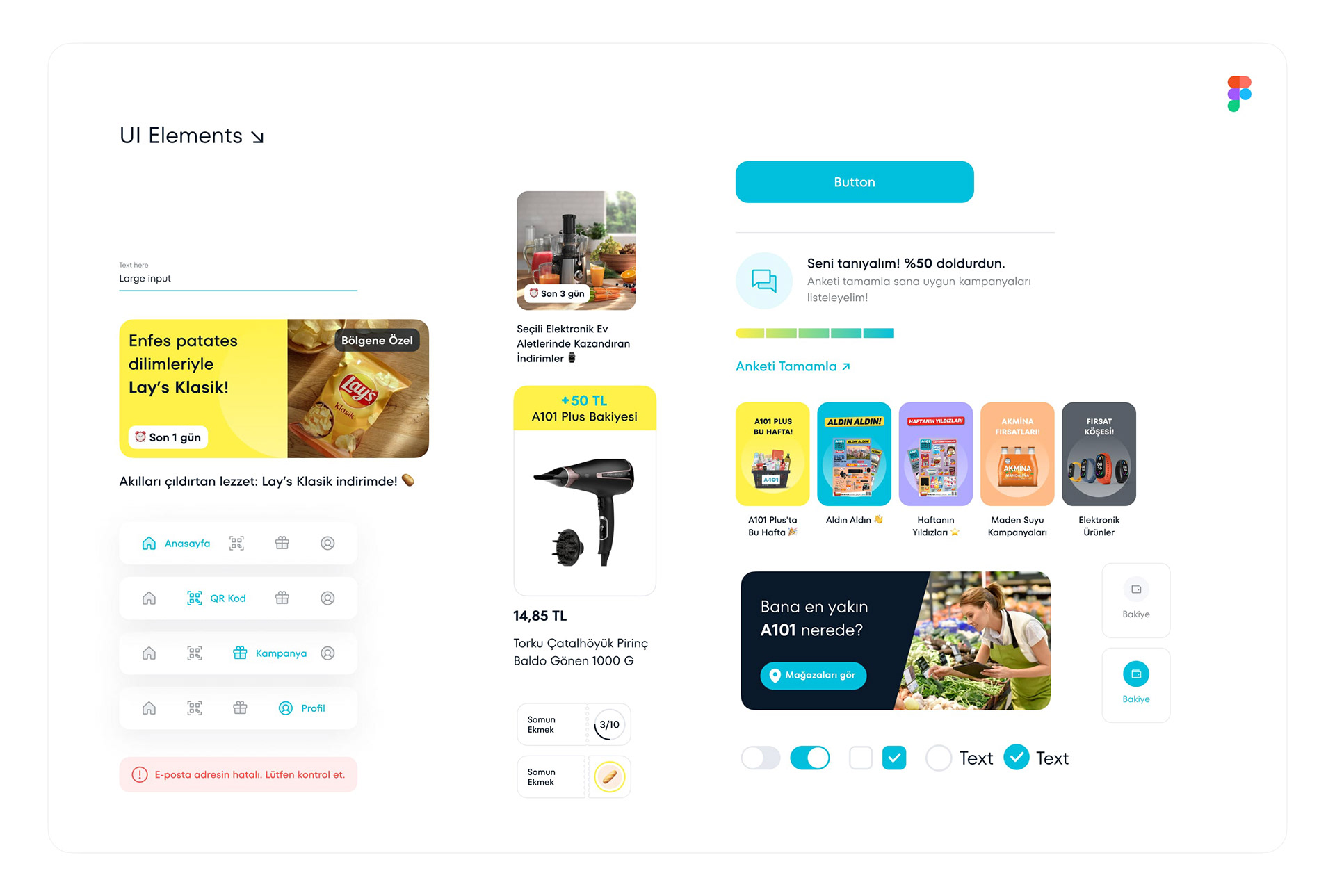 As Fol, we closely cooperated with A101 team in order to create a new online shopping experience and designed all interaction and communication processes, such as the brand logo, comprehensive branding system, user experience, mobile app, and website.