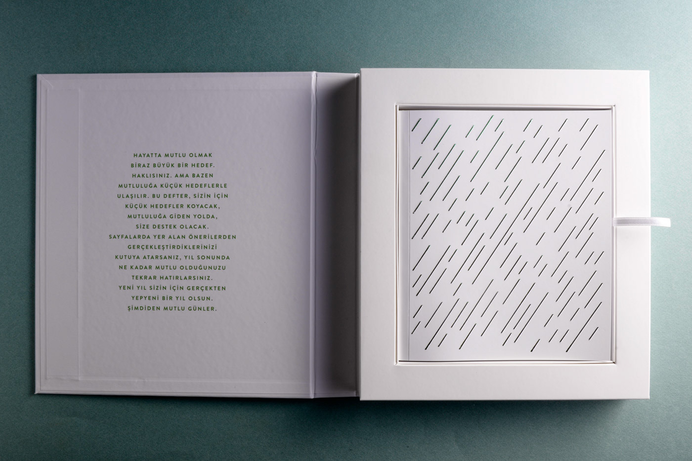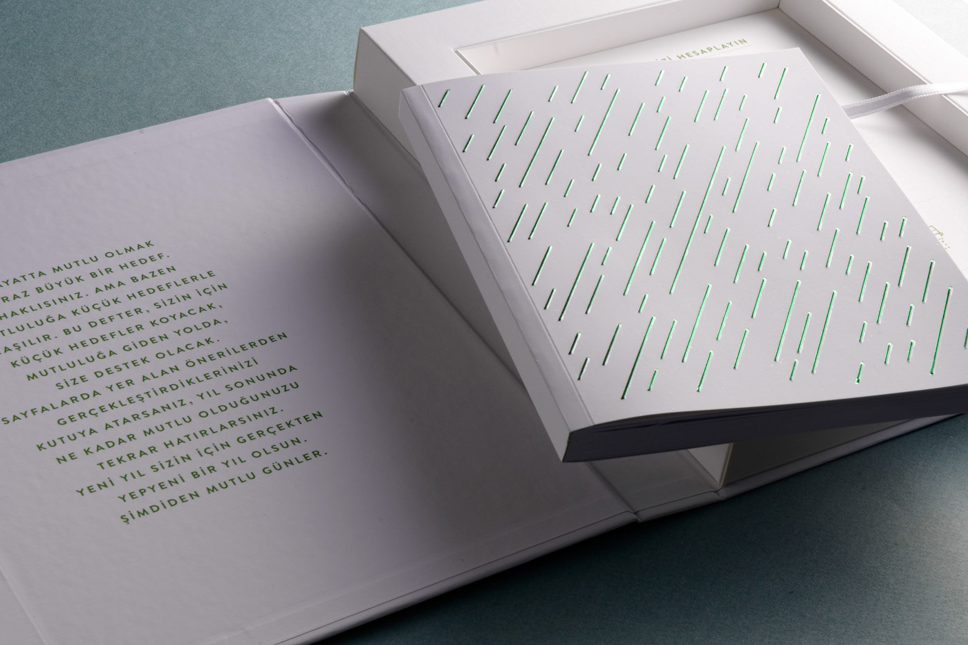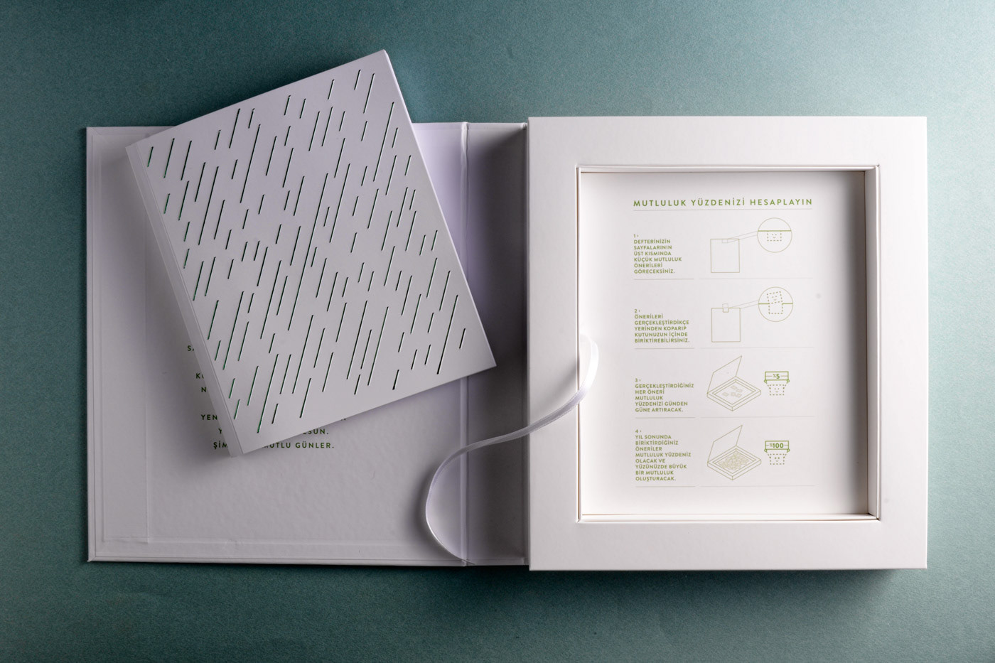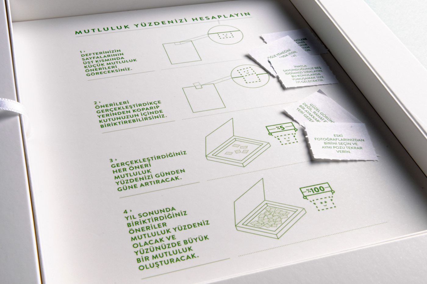 With a short brief we designed and named "Yüz Mutlu Gün (One Hundred Happy Percent) notebook.