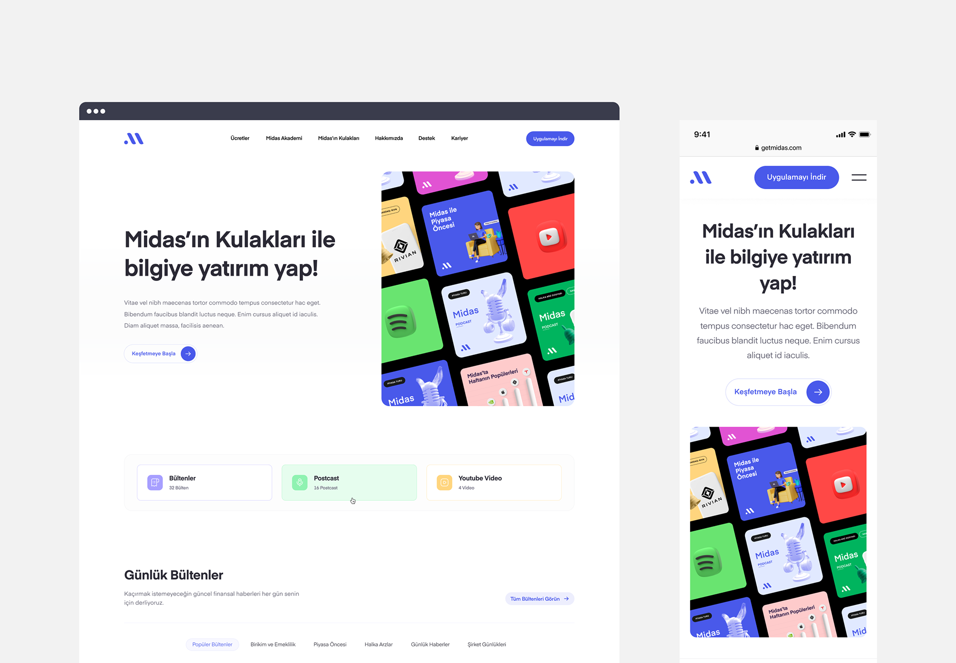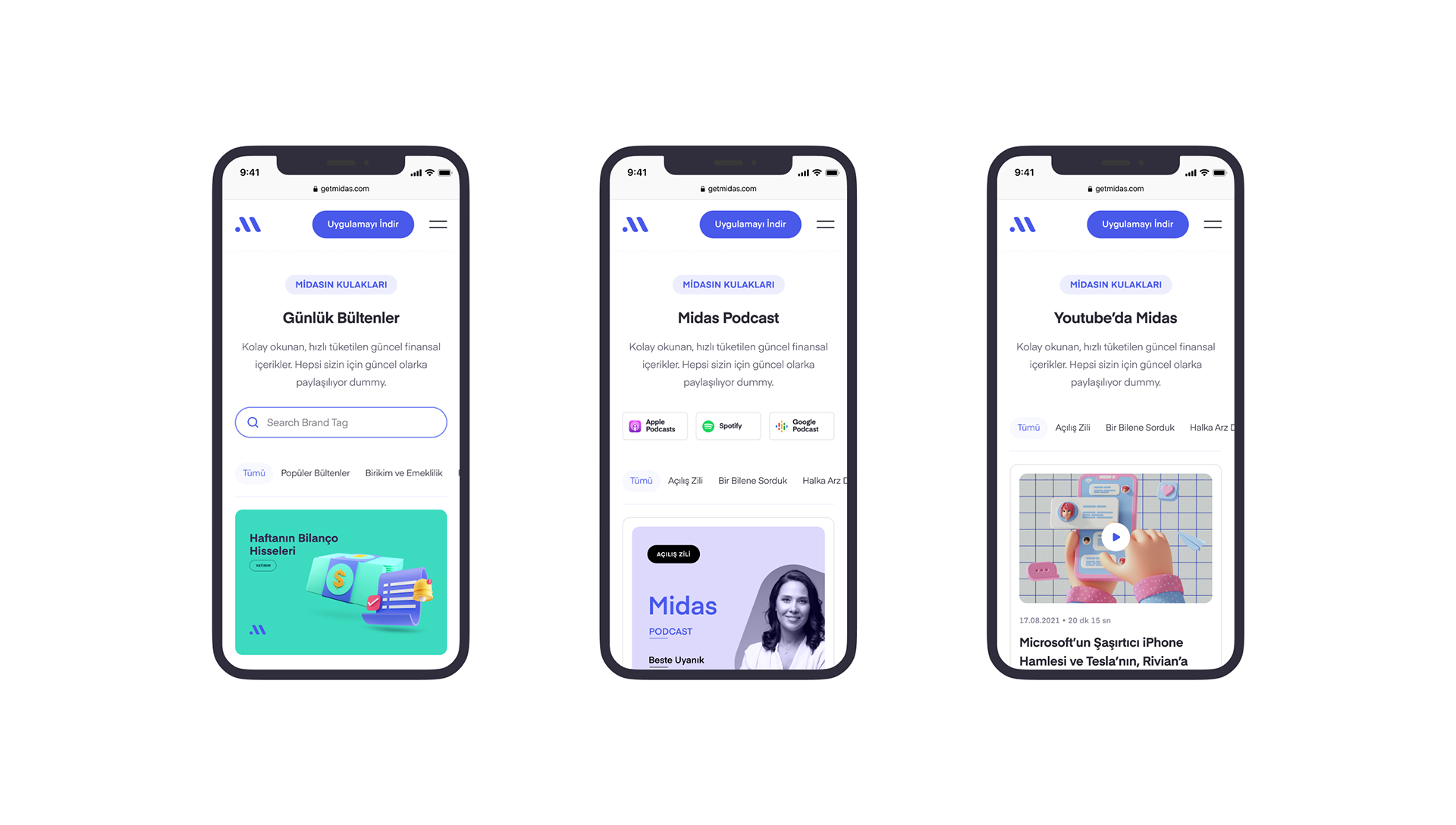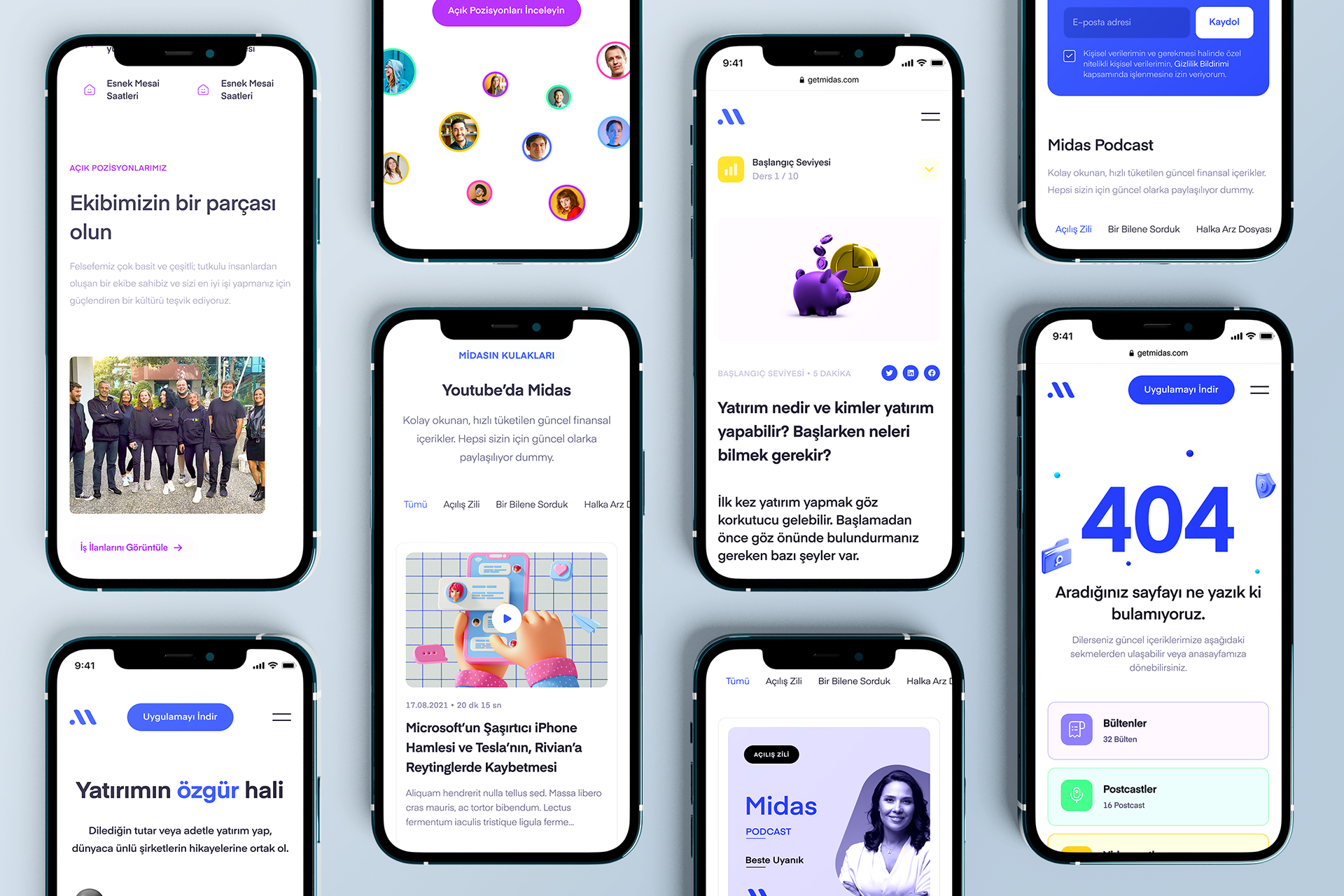 As Fol, we worked closely with the Midas team to set a new direction for Midas’s branding and renew their webpage. We worked on all interaction areas that make up the brand experience such as brand identity, communication design system, animations, illustrations and webpage. With the new typography, color system and design language, we defined Midas as a technological, easy-to-understand and human-centered brand. To strengthen both the emotional and functional experience of the users, we have designed the website with the brand identity and user experience in focus.