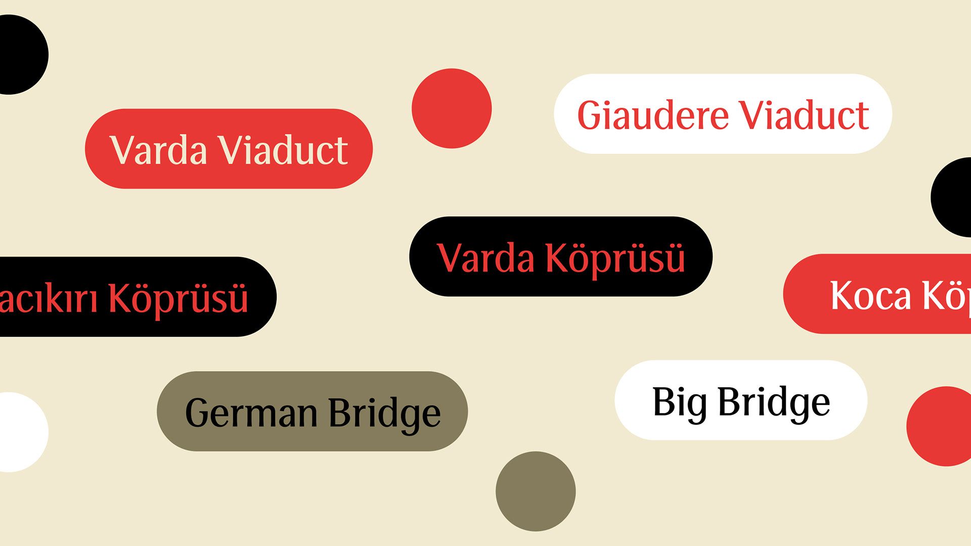 Varda Semi Serif takes its name from the Varda Bridge, which was built by the Germans in 1912. The bridge was constructed to complete the Istanbul–Baghdad–Hejaz Railway line. The typeface was initially inspired by Otl Aicher’s Rotis Semi Serif. In this context, Varda adopts a semi-serif design as a transitional form. Like the pillars of the bridge, the vertical axis and the widening contrasts in the letterforms’ legs form the core elements of the design. Varda Semi Serif, ismini 1912 yılında Almanlar tarafından inşa edilen Varda Köprüsü’nden alır. Köprünün yapılış amacı İstanbul- Bağdat - Hicaz Demiryolu hattını tamamlamaktır. Aynı zamanda başlangıçta Otl Aicher’ın Rotis Semi Serif’den esinlenilmiştir. Bu bağlamdan hareketle Varda’da bir ara geçiş olarak Semi Serif tasarlanmıştır. Köprünün ayakları gibi dikey eksende, bacaklardaki kontrast genişlemeleri tasarımın ana unsurunu oluşturmaktadır.